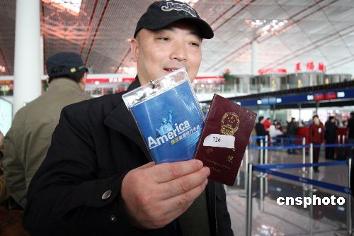 中國首個赴美購房團于2月24日在首都機場乘坐13點40分的國際航班啟程赴美。登機前,赴美購房團舉行了簡單的出發(fā)儀式。赴美購房團登機前,搜房網(wǎng)對團員進(jìn)行了問卷調(diào)查,結(jié)果顯示,在計劃行程中的五個美國城市中,紐約以36.84%的高支持率成為最受關(guān)注的城市,接下來依次為洛杉磯、舊金山、波士頓和拉斯維加斯。中新社發(fā) 王昊 攝