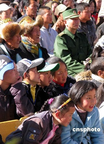 3月8日,西藏軍區(qū)文工團(tuán)到拉薩市吉崩崗社區(qū),為居民們帶來(lái)專場(chǎng)演出。中新社發(fā) 劉舒凌 攝
