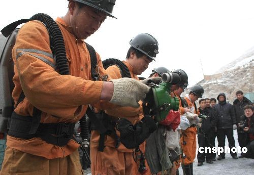 3月12日,位于甘肅省武威市天?h境內(nèi)的一座煤礦發(fā)生事故,被困井下的6名當(dāng)班工作人員全部遇難。該煤礦屬于天祝隆德煤業(yè)有限責(zé)任公司所有,證照齊全,1996年建成投產(chǎn),年設(shè)計生產(chǎn)能力6萬噸。今年2月13日,該礦提出申請井下維修報告,16日獲批準(zhǔn)進(jìn)行維修,至事故發(fā)生時仍在維修整改之中,并未投入生產(chǎn)。圖為救援人員作下井前的準(zhǔn)備工作。中新社發(fā) 殷春永 攝