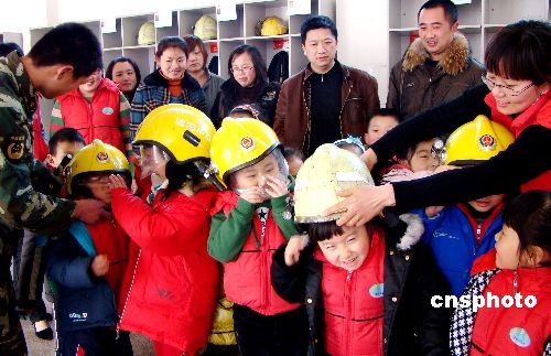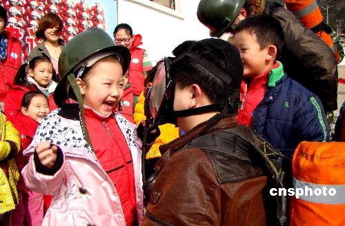 3月13日,江蘇連云港市公安連云消防大隊舉辦了“警營對外開放日”活動,邀請老師、家長、小朋友前來參觀。小朋友們參觀了消防設施,聽消防隊員講解消防知識,體驗著裝,試戴呼吸器,親身感受警察風采。警民共同迎接即將到來的“3·14國際警察日”。中新社發(fā) lyg王春 攝