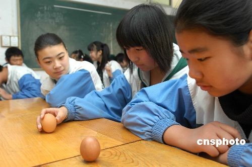 3月20日,山東鄒平縣實驗中學(xué)的學(xué)生在立雞蛋。當(dāng)日是春分,我國民間有在這天立雞蛋的傳統(tǒng),在春分立蛋的說法中,認(rèn)為春分這一天,太陽直射在赤道上,地球的引力會發(fā)生變化,雞蛋所受到的重力會隨著引力的變化而變化,因此雞蛋會更容易站立起來。中新社發(fā) 董乃德 攝