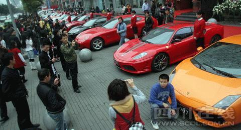 車隊在一家新開張的酒樓門前停下,“貝克漢姆要到這家酒樓助興?”眾人一陣疑惑。車內人逐一走出,但并沒有偶像小貝出現。這時,有人理智地分析:“小貝在備戰(zhàn)世界杯預選賽,咋可能來成都嘛。即使他不來,能看到這些車也不容易了!”“不是貝克漢姆來了,是這家酒樓開張,這些名車車主都是過來助興的!币晃还ぷ魅藛T從酒樓走出來,熱情地給大伙當起了“解說員”。他說,這個名車車隊由25輛車組成,其中蘭博基尼有4輛、法拉利9輛、保時捷4輛、奔馳4輛、勞斯萊斯2輛、GT3RS一輛、奎蛇一輛。奎蛇屬于限量版,全亞洲僅此一臺;GT3RS跑車,全國也僅此一臺;運動型的法拉利SC30,成都只有兩臺。這些車平均價格達到300萬元以上,25輛車的總價值超過一億元。