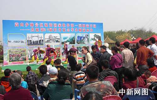 中新網(wǎng)洛陽四月十四日電 (記者趙敏 朱曉娟 孫春霞)本月中旬,河南嵩山少林寺景區(qū)借洛陽牡丹“花”會(huì)契機(jī),率領(lǐng)武僧表演團(tuán)在洛陽龍門石窟及國(guó)家牡丹園內(nèi)展示少林功夫,“武”動(dòng)洛陽城,吸引海內(nèi)外游人。