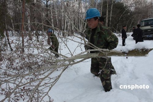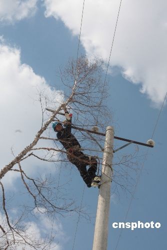 4月23日,當(dāng)牡丹江市電業(yè)搶修人員將三道林場(chǎng)內(nèi)最后一處電線桿上的刀閘閉合,7000多戶(hù)因暴雪導(dǎo)致斷電的人家,終于重新恢復(fù)正常的生產(chǎn)生活。 4月21日,黑龍江省牡丹江市出現(xiàn)雨夾雪天氣,其中牡丹江市三道林場(chǎng)的局部林區(qū)因當(dāng)?shù)亍靶夂颉庇绊懺馐鼙┭┮u擊,最深處的積雪厚度達(dá)到1米以上,林區(qū)內(nèi)的一些林木被大雪壓斷,通過(guò)林區(qū)內(nèi)的部分供電線路短路。從4月21日至4月23日,牡丹江市電業(yè)系統(tǒng)出動(dòng)100多名搶修人員奮戰(zhàn)在40多公里的林區(qū)供電線路上,及時(shí)排除短路故障及線路險(xiǎn)情。直到4月23日下午1點(diǎn)30分,各個(gè)停電村屯才陸續(xù)恢復(fù)供電。中新社發(fā) 莊文斌 攝