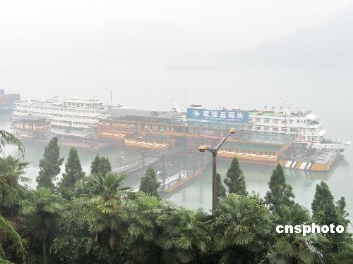 4月24日,霧中船舶停泊湖北宜昌港區(qū),待天氣適航后前往長(zhǎng)江三峽。據(jù)悉,三峽河段近期頻繁出現(xiàn)濃霧、大風(fēng)天氣,對(duì)船舶的安全航行、停泊及作業(yè)帶來(lái)嚴(yán)重影響。中國(guó)三峽海事局日前發(fā)布航行通告,要求船舶盡早采取惡劣天氣下的各種安全應(yīng)對(duì)措施,謹(jǐn)慎操作,確保安全。中新社發(fā) 韓玉洪 攝