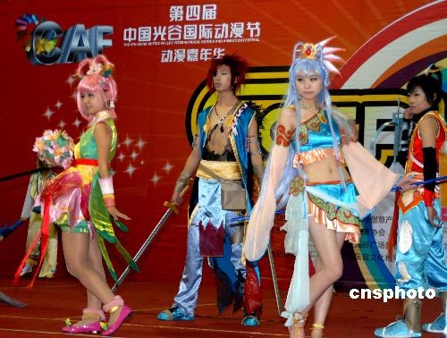 4月30日,第四屆中國“光谷”國際動漫節(jié)在武漢開幕。據(jù)了解,本屆動漫節(jié)規(guī)模空前,近3萬平方米的活動現(xiàn)場和近千展臺超過前三屆,還吸引了盛大、雷柏、固鉑、麥當(dāng)勞等國際著名公司和武漢“光谷”知名動漫企業(yè)參加。本屆動漫節(jié)將以嘉年華的形式與廣大市民見面,由以往的“看”提升到“玩”,除了保留以往的COSPLAY大賽和激光表演等經(jīng)典項目,還特別推出了電競產(chǎn)品迪士尼“魔幻飛板”和兩岸三地動漫音樂社團同臺獻藝的動漫音樂會等九大娛樂、競賽項目。中新社發(fā) 楚天行 攝