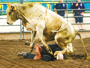 這位名叫布賴恩·尤班克斯的騎手已頭發(fā)花白,當日表演中他騎一頭公牛剛出場,還沒來得及向觀眾揮手致意就被牛掀翻在地。這頭牛四蹄凌空飛起腳踹向布賴恩的頭部和軀干,一時驚慌失措的布賴恩趕緊用雙手保護住頭部,看臺上的觀眾更是陷入恐慌。一旁的工作人員和其他騎手見狀,趕忙跑過來驅(qū)趕公牛。令人不可思議的是,布賴恩竟然還掙扎著站了起來,被前來幫他的人帶離競技場。經(jīng)醫(yī)生檢查,布賴恩只是輕微擦傷和局部皮膚發(fā)腫,并無大礙。