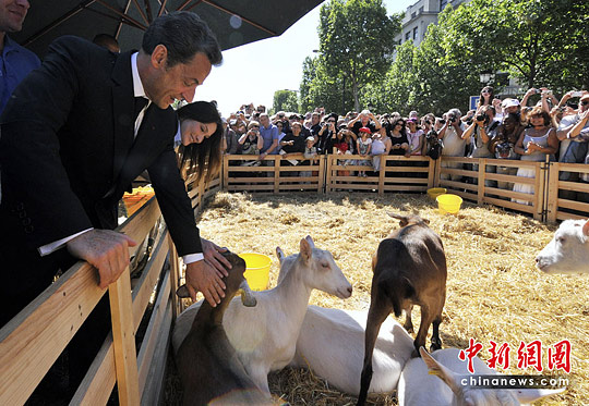 5月24日,法國巴黎,法國總統(tǒng)薩科齊和妻子卡拉·布呂尼參觀巴黎“自然首都”展。