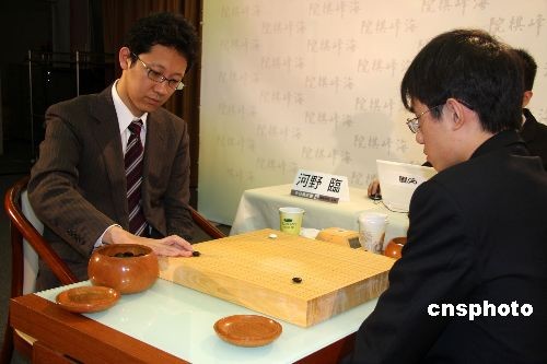 6月21日,由海峰棋院主辦的第二屆臺(tái)日精英職業(yè)圍棋賽在臺(tái)北落幕,日本選手河野臨九段獲得冠軍及75萬(wàn)元新臺(tái)幣獎(jiǎng)金。圖為河野臨(左)與臺(tái)灣職業(yè)棋手陳詩(shī)淵八段在決賽中,陳中盤(pán)投子認(rèn)負(fù)獲亞軍及30萬(wàn)元新臺(tái)幣獎(jiǎng)金。中新社發(fā) 董會(huì)峰 攝