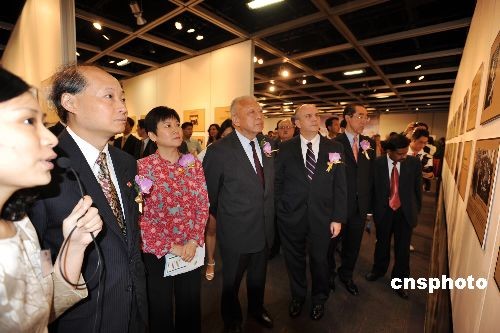 七月二十日傍晚,“中美建交三十周年圖片展”在香港開(kāi)幕。全國(guó)政協(xié)副主席董建華(左四)、香港特區(qū)政府司長(zhǎng)唐英年(右二)、外交部駐港特派員公署署理特派員詹永新(左二)、中國(guó)人民對(duì)外友協(xié)副會(huì)長(zhǎng)李小林女士(左三)、美國(guó)駐香港總領(lǐng)事唐若文(右三)等貴賓出席并觀(guān)看展覽。中新社發(fā) 鄭祚聲 攝
