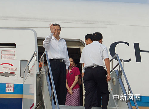 5月21日上午,廣西壯族自治區(qū)主席馬飚率領(lǐng)廣西經(jīng)貿(mào)文化代表團乘坐包機從廣西南寧機場起飛,開始飛赴臺灣,廣西由此成為中國大陸各省、自治區(qū)、直轄市中第一個由省長級官員率團赴臺進行經(jīng)貿(mào)文化交流的省份,此行也成為海峽兩岸交流史上的新突破。 馬飚率團此行赴臺是參加“兩岸產(chǎn)業(yè)高峰會議——2009年桂臺經(jīng)貿(mào)合作論壇”,廣西經(jīng)貿(mào)文化代表團人數(shù)多達1000余人,這也是大陸赴臺人數(shù)最多的參訪團。劉萬強 攝