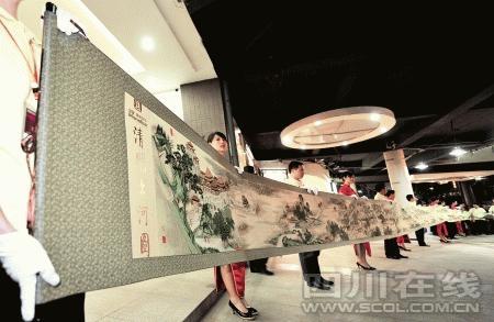 經(jīng)過37位設(shè)計師1年半時間的研發(fā),18位專業(yè)高級繡師歷時180多天、巧奪天工的繡制,長22米的《清明上河圖》十字繡,昨(30日)晚在成都首次公開亮相。這幅特殊的十字繡總共使用了116505米繡線,共計2032611針,重達20600克,是目前世界上最長的十字繡藝術(shù)品。18位技師從2008年7月20日起開始繡制,至2009年1月20日完工,共繡制人物814人,動物83匹,船只29艘,房屋樓宇30多棟,車13輛,轎8頂,橋17座,樹木180棵,人物往來衣著不同,神情各異,栩栩如生。作品將在第二屆非物質(zhì)文化遺產(chǎn)節(jié)上正式展出。(譚曦 攝)