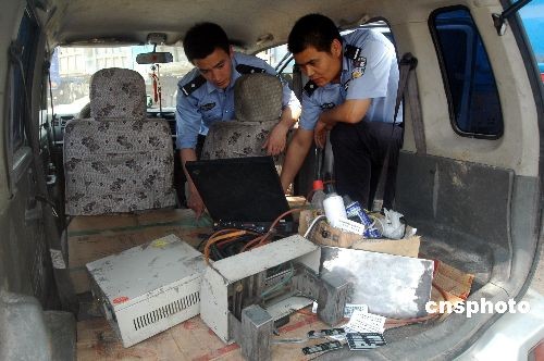 6月1日,山東省郯城縣警方接群眾舉報,在褚墩鎮(zhèn)一家車輛修理廠內(nèi)破獲一起克隆“車輛戶口”案件。據(jù)辦案民警介紹,犯罪嫌疑人流動作案,打擊難度很大。如果車輛被克隆或更改了戶口,使“黑車”披上“合法”的銷臟外衣,將給國家或個人造成巨大經(jīng)濟損失。目前,此案正在進一步審理中。 中新社發(fā) 房德華 攝