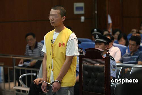 6月24日,為滿足女友的開銷殺死親生母親的朱某被押上法庭。當日,鄭州市中級人民法院開庭審理一起故意殺人案件,為滿足女友的開銷,朱某不斷盜竊家里的財物,而為了不讓父母發(fā)現(xiàn)自己的偷竊行為,年滿18歲的浙江青年朱某用匕首往母親身上連刺幾十刀,致使母親當場死亡,后被公安機關抓獲,公訴機關認為,被告人朱某故意傷害他人身體,并致人死亡,其行為應以故意殺人罪追究其刑事責任,法庭將擇日宣判。中新社發(fā) 王中舉 攝