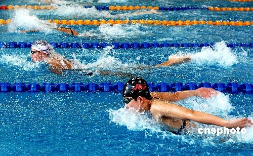 6月25日,為期五天的第十一屆全運會游泳預(yù)選賽暨2009年全國青年游泳錦標(biāo)賽落下帷幕。本次比賽為第十一屆全運會游泳決賽的資格賽,分別在天津和大連兩個賽區(qū)舉行,達標(biāo)運動員取得了將于今年十月份舉行的全運會游泳決賽的資格。天津賽區(qū)有江蘇、浙江、安徽、福建、廣東等14支代表隊的252名選手報名參賽;大連賽區(qū)有北京、遼寧、上海、貴州、解放軍等12支代表隊的314名選手報名參賽。中新社發(fā) 劉德斌 攝