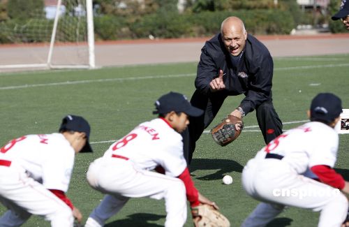 10月31,入選棒球名人堂的前美國職業(yè)棒球運(yùn)動(dòng)員卡爾·瑞普金在北京大成學(xué)校教學(xué)生打棒球。這是他以美國國務(wù)院派遣的美國公共外交特使的身份進(jìn)行的首次出訪。瑞普金將訪問北京、上海和廣州,在這三個(gè)城市中,瑞普金將與青少年進(jìn)行接觸,相互進(jìn)行文化交流,同時(shí)為更多的新手講解棒球運(yùn)動(dòng)?·瑞普金是棒球運(yùn)動(dòng)有史以來空前的鐵人紀(jì)錄保持者,也是美國棒球名人堂成員之一。他是棒球史上僅有的取得400次本壘打和擊中3000次的八位知名球員之一。2007年7月29日,他以史上最高得票數(shù)入選美國棒球名人堂。中新社發(fā) 杜洋 攝