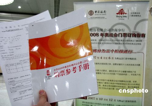 12月10日,濟(jì)南市民在中國銀行預(yù)定北京奧運(yùn)門票。據(jù)銀行工作人員介紹,由于這一次預(yù)定需要抽簽,因此沒有出現(xiàn)上一次的搶購情景,體育愛好者們心情平靜,一天下來僅有數(shù)十人預(yù)定。 中新社發(fā) 周青先 攝