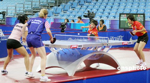 12月18日,奧運(yùn)測試賽乒乓球女團(tuán)比賽揭幕。第三場進(jìn)行的是雙打比賽,中國隊(duì)派出郭躍/李曉霞這對雙打組合,而歐洲聯(lián)隊(duì)一方則是鮑羅斯和孫禎琦的組合,雖然首局在拿到局點(diǎn)的情況下被對手以12比10逆轉(zhuǎn),但郭躍和李曉霞調(diào)整心態(tài)的速度非常快,她們以11比7,11比5和11比2連下三局,以3比1戰(zhàn)勝鮑羅斯/孫禎琦,從而使得中國女隊(duì)以3比0輕取歐洲聯(lián)隊(duì),取得本次邀請賽的開門紅。中新社發(fā) 博芽影像 攝