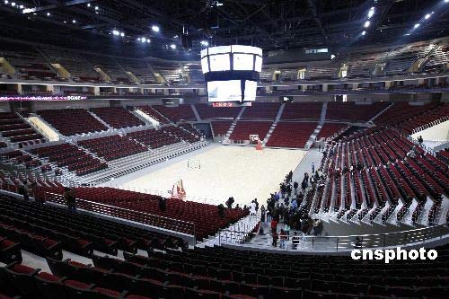 2月19日,北京五棵松2008年北京奧運會籃球館比賽區(qū)。據(jù)工作人員介紹,作為奧運會籃球比賽場館,也是亞洲第一座NBA風格的體育館,這座場館出自休斯敦火箭主場設計師之手,完全按照NBA的設計進行改造。整個體育館內共有18700個席位,包括2500個貴賓席、9600個底層座位和48個包廂,座椅的設計都采用NBA式的軟座,看臺上的過道窄而多,這一點與火箭的豐田中心非常相似。比賽期間,場館內還設有兩個餐廳以及商鋪,這一點都和NBA的球場無異。不僅場地、座椅是NBA風格的,就連場館包廂前的走廊走向,都與NBA場館非常相似。球場將在4月份迎來“好運北京”的測試賽,這也將是體育館內的首次比賽。中新社發(fā) 杜洋 攝