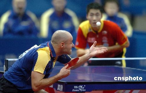 2月25日晚,第49屆世乒賽團(tuán)體賽進(jìn)入第二天的爭奪,中國男隊(duì)迎戰(zhàn)小組賽中的羅馬尼亞隊(duì)。王勵勤在首場比賽中以1比3負(fù)于世界排名97位的菲利蒙。中國隊(duì)出場的另外兩運(yùn)動員陳玘和王皓分別戰(zhàn)勝對手,最終中國隊(duì)3比1勝羅馬尼亞隊(duì)。中新社發(fā) 吳峻 攝