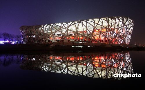 圖:國(guó)家體育場(chǎng)“鳥巢”進(jìn)行全面試燈