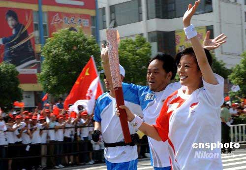 圖:演員趙薇傳遞蕪湖首棒奧運(yùn)火炬