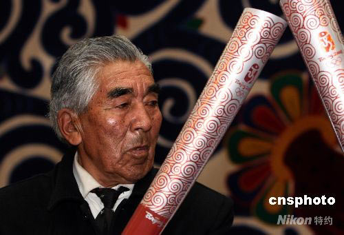 圖:西藏傳遞首棒火炬手 75歲的"登山英雄"貢布