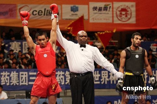 9月19日,“第四屆世界杯武術(shù)散打比賽”在黑龍江舉行。來自俄羅斯、伊朗、巴西、菲律賓、中國澳門等19個國家和地區(qū)的71名男女散打運(yùn)動員參加比賽。中新社發(fā) 姚庭山 攝