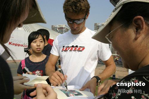 西班牙老將費(fèi)雷羅為球迷簽名。