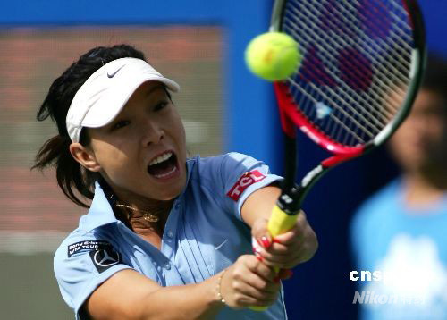 9月26日,2008年中國(guó)網(wǎng)球公開(kāi)賽繼續(xù)進(jìn)行。在下午結(jié)束的一場(chǎng)女單1/4決賽中,中國(guó)金花鄭潔經(jīng)過(guò)3小時(shí)苦戰(zhàn)以7-6(4)、2-6和6-4力克塞爾維亞美少女伊萬(wàn)諾維奇,晉級(jí)4強(qiáng)。 中新社發(fā) 富田 攝