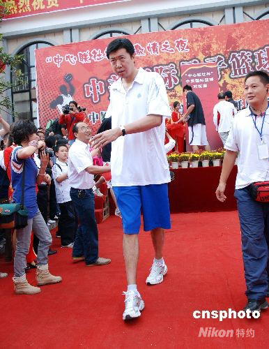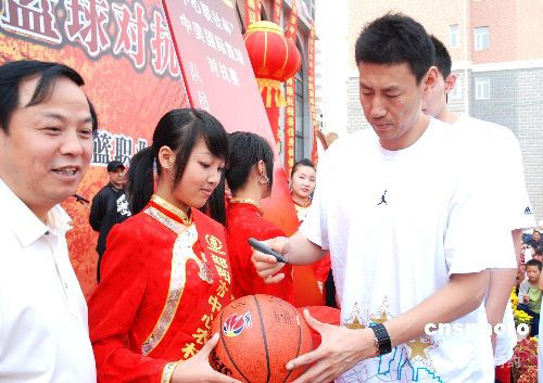 10月5日,“中心聯(lián)社杯”中美國際男子籃球?qū)官惖年?duì)員抵達(dá)湖南邵陽。在當(dāng)日舉行的球星球迷見面會(huì)上,王治郅、李楠等國內(nèi)外球星使場面異;鸨。中新社發(fā) 呂建設(shè) 攝