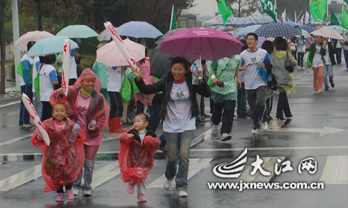 11月2日上午8點15分,由奧運冠軍、健康跑活動推廣大使王軍霞領跑的“健康跑”活動在南昌市紅谷灘舉行,雖然當日天公不作美,但南昌近萬市民還是熱情不減地參加了活動的全程。