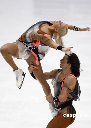 11月8日,2008中國杯世界花樣滑冰大獎賽繼續(xù)在北京首都體育館舉行。在結束的冰舞比賽中,俄羅斯選手多姆尼娜/沙巴林奪得冠軍。中新社發(fā) 盛佳鵬 攝