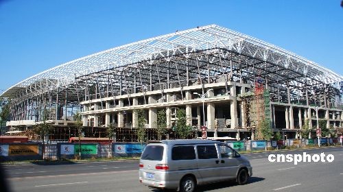 2008年11月8日,沈陽奧體中心綜合體育館已現(xiàn)形。該館可容納8000名觀眾,可滿足羽毛球、乒乓球、體操、拳擊等賽事對(duì)場(chǎng)館的要求,還可舉辦大型音樂會(huì)、演唱會(huì)。沈陽奧體中心建筑群“一場(chǎng)三館”,由奧體中心一座體育場(chǎng)、一座綜合體育館、一座游泳館和一座網(wǎng)球館組成。中新社發(fā) 劉寶成 攝