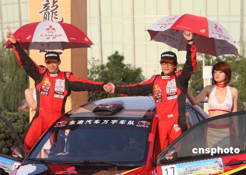 2008年國際汽聯(lián)亞太拉力錦標賽(APRC) 暨“捷馬京橋杯”中國(龍游)拉力賽(CRC)11月9日在浙江省龍游縣結(jié)束。經(jīng)過三天的激烈角逐,貴州百靈車隊劉曹冬與澳大利亞領航員麥克盧寧密切配合奪得中國(龍游)拉力賽(CRC)N組冠軍。中新社發(fā) 趙振清 攝