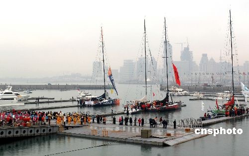 2月14日,2008-2009年沃爾沃環(huán)球帆船賽青島站舉行起航儀式。據(jù)悉,為了讓民眾充分領(lǐng)略沃爾沃環(huán)球帆船賽的魅力,青島站組委會(huì)向公眾免費(fèi)開放奧帆中心,吸引了大量游客。截至當(dāng)日,青島奧帆中心共接待海內(nèi)外觀眾四十余萬人次。沃爾沃環(huán)球帆船賽是繼奧帆賽、殘奧帆賽后,青島承辦的又一項(xiàng)全球頂級(jí)專業(yè)帆船賽事,也是中國首次在冬季寒冷氣候下在北方水域承辦的帆船賽事。中新社發(fā) 衛(wèi)卿 攝