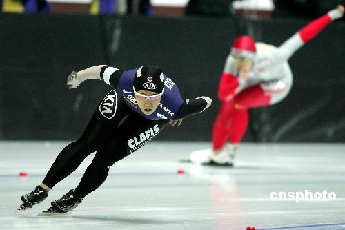 2月19日,第24屆大學(xué)生冬季運動會進(jìn)入第二天的比賽,速度滑冰女子500米項目決出本屆大冬會首枚金牌,韓國選手李相花(左)以38秒16的成績獲得第一名,同時刷新了由她自己保持的大冬會記錄,中國選手于靜位列第二,另一名中國選手張爽取得銅牌。中新社發(fā) 富田 攝