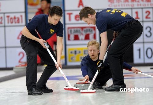 2月26日,大冬會(huì)男子冰壺半決賽在黑龍江省冰上基地冰壺館舉行,中國隊(duì)7:8惜敗于瑞典隊(duì)。中新社發(fā) 姚庭山 攝