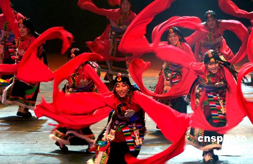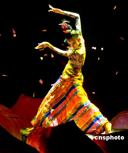 11月29日晚,由著名舞蹈家楊麗萍擔任總編導(dǎo)并領(lǐng)銜主演的大型藏族原生態(tài)歌舞樂《藏謎》在福州上演,這是首部全景式展現(xiàn)藏族原生態(tài)文化的大型歌舞樂演出,讓全場的觀眾充分領(lǐng)略藏族文化的博大精深。中新社發(fā) 劉可耕 攝