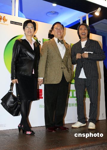 一月二十三日晚,周星馳身兼導演、編劇、演員,歷時三年打造的電影《長江七號》在香港舉行全球首映禮,百位政界、商界、演藝界嘉賓出席觀看。特首曾蔭權夫婦也出席首映禮,支持香港創(chuàng)意工業(yè)。中新社發(fā) 王麗南 攝