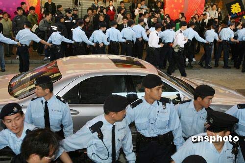 陳冠希在數(shù)百警察保護(hù)下乘車離開記者會(huì)