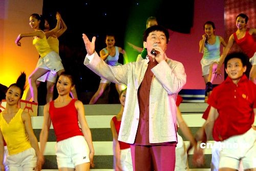 巨星成龍?jiān)乖趶B門放歌祝福全球華人