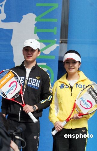 3月27日,2008“中網(wǎng)網(wǎng)動中國”推廣活動在北京航空航天大學網(wǎng)球館舉行。趙薇、潘粵明作為2008“中網(wǎng)網(wǎng)動中國”的代言人出席該活動。中新社發(fā) 博芽影像 攝