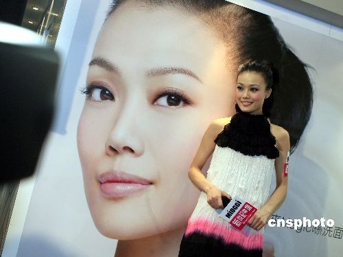四月三日,英皇“一姐”容祖兒在香港出席韓國一化妝品代言人活動。容祖兒因演唱實力強勁,近年在香港人氣急升,帶動廣告事業(yè)俏旺。她曾連續(xù)四年奪得TVB十大勁歌金曲香港最受歡迎的女歌星。中新社發(fā) 王麗南 攝