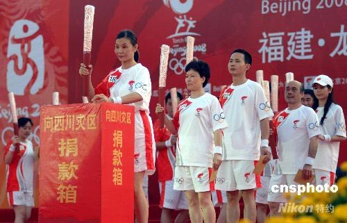 圖:奧運火炬手向四川災(zāi)區(qū)人民捐款