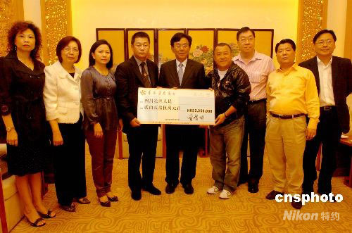 明星曾志偉等代表香港嘉應(yīng)商會向四川地震災(zāi)區(qū)捐款