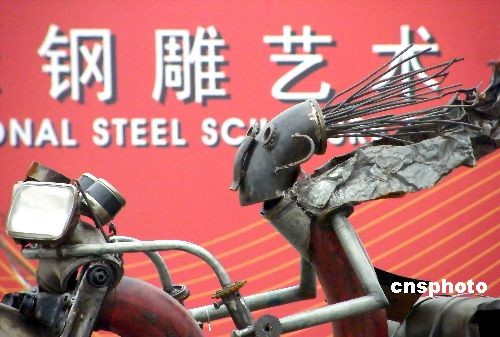 2008年11月1日,第二屆上海國(guó)際鋼雕藝術(shù)節(jié)在上海國(guó)際節(jié)能環(huán)保園開(kāi)幕。此次藝術(shù)節(jié)以“資源再生利用、藝術(shù)創(chuàng)造價(jià)值”為主題,展出了中外藝術(shù)家利用廢舊鋼鐵創(chuàng)作的150余件鋼雕作品。中新社發(fā) 井韋 攝