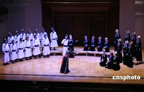 當?shù)貢r間8日晚,內蒙古民族歌舞劇院蒙古族青年合唱團在倫敦卡杜甘音樂廳(Cadogan Hall)進行無伴奏合唱演出。中新社發(fā) 李鵬 攝