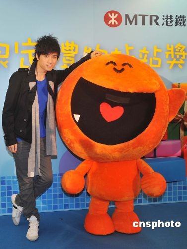 十一月二十四日,香港歌星古巨基帶著其設(shè)計的“愛兒” Kubi,出席港鐵友禮會“站站獎”宣傳活動。中新社發(fā) 鄧慶樂 攝