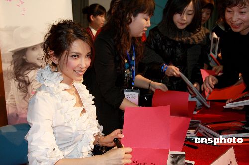 1月7日,李冰冰帶著新書(shū)《李冰冰:十年·映畫(huà)》在北京國(guó)際展覽中心召開(kāi)新聞發(fā)布會(huì),并把新書(shū)獲得的首批版稅捐給了聯(lián)合國(guó)兒童基金會(huì)。現(xiàn)場(chǎng)不少影迷專程從外地飛赴北京趕來(lái)給李冰冰獻(xiàn)花、加油。而為了感謝影迷的支持,李冰冰也在現(xiàn)場(chǎng)為部分讀者簽名贈(zèng)書(shū)。中新社發(fā) 鄭雄增 攝